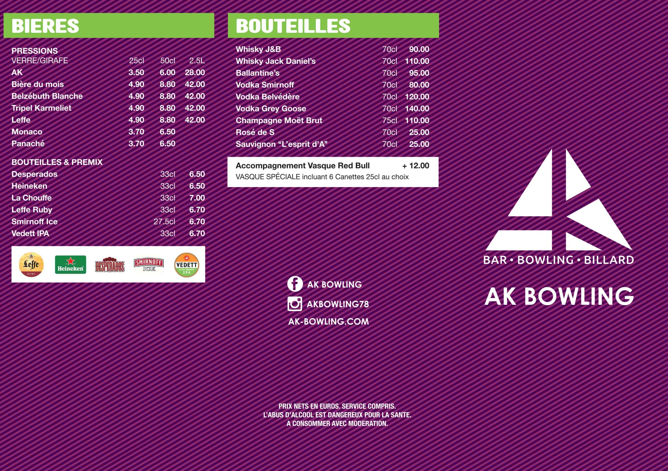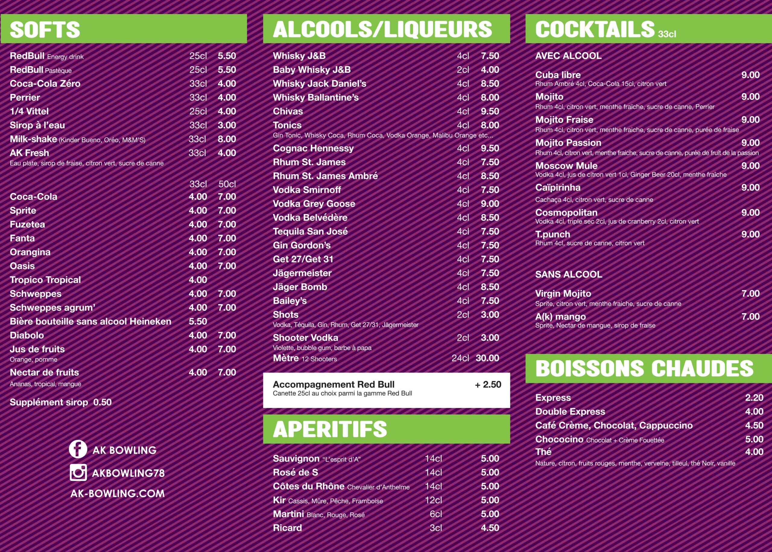 Carte des boissons